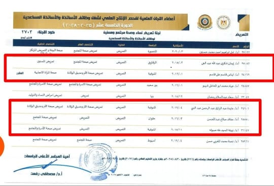 تتقدم ا.د/ سناء عبد العظيم ابراهيم غندور عميد كلية التمريض بأرق التهنئة الى ا.د/ جهاد محمد ابو المعاطى الاستاذ بقسم تمريض صحة الاسرة والمجتمع بمناسبة اختيار سيادتها كعضو من أعضاء اللجان العلمية لفحص الانتاج العلمى لشغل وظائف الأساتذة والأساتذة المساعدين لتخصصات النسا وصحة المجتمع والمسنين الدورة الخامسة عشر 2025-2028