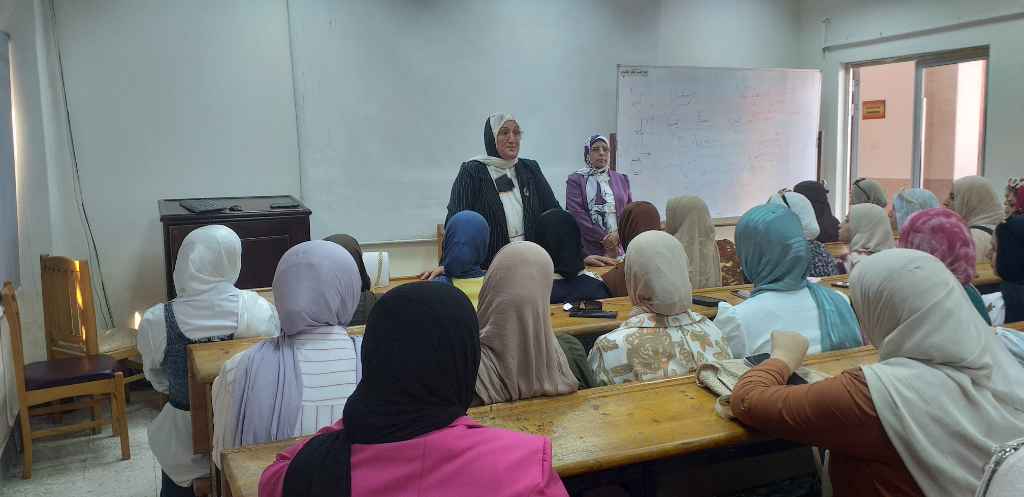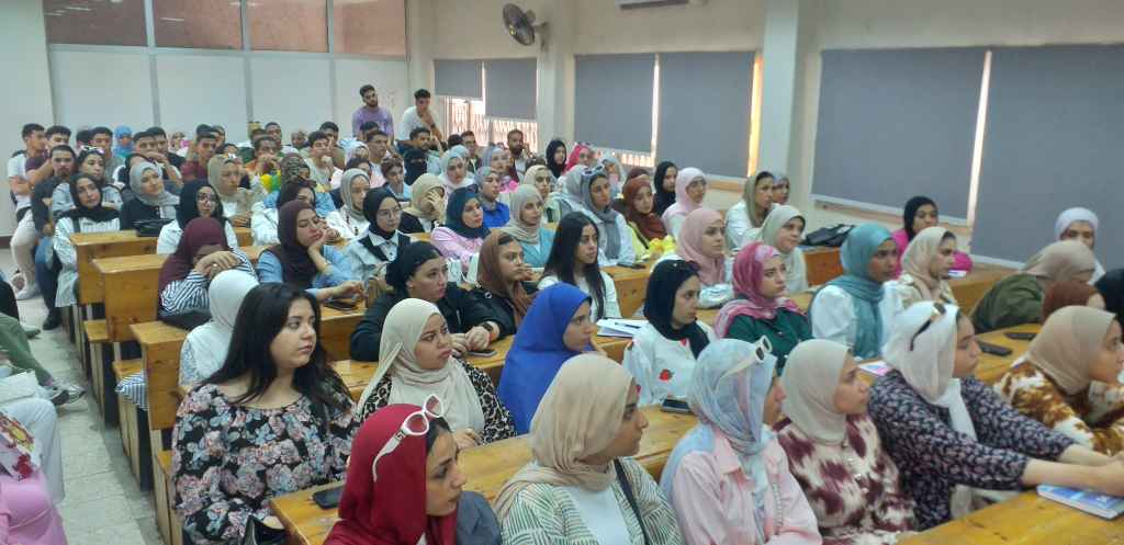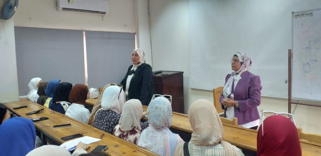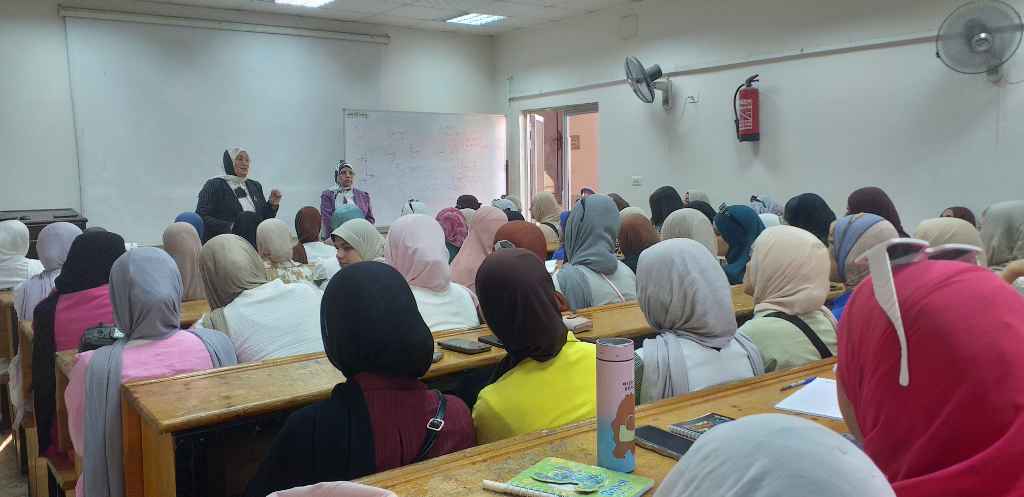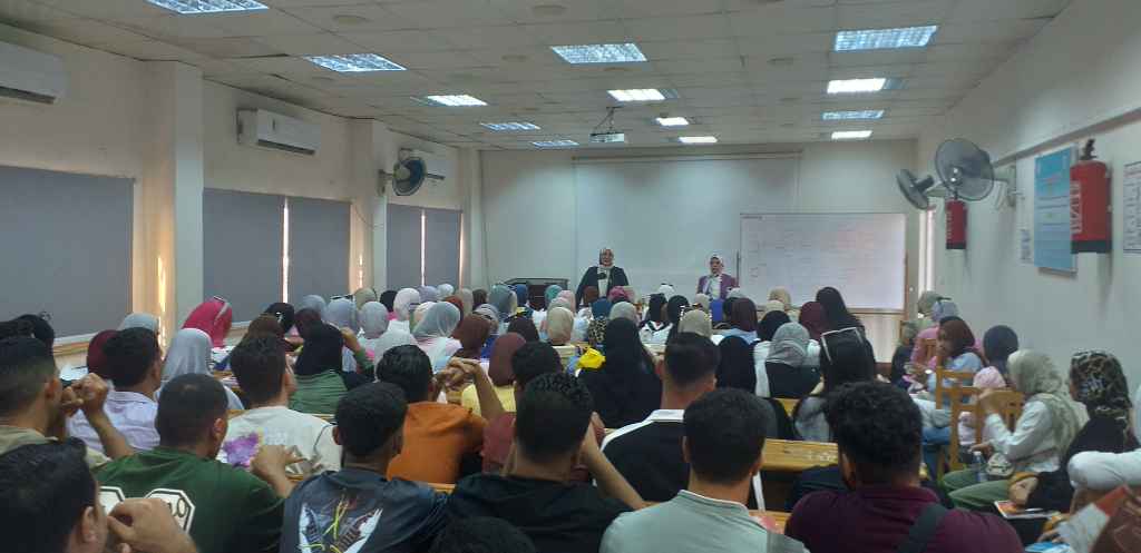 تحت رعاية أ.د/ سناء عبد العظيم عميد الكلية تفضلت أ.د/ سهام شحاته ابراهيم وكيل الكلية لشئون التعليم والطلاب بعرض ندوة توعوية لطلبة البرنامج التخصصى الفرقة الاولى للعام الجامعى 2025-2026 حيث تفضلت سيادتها بعرض نبذة عن طبيعة الدراسة بالكلية ونظام المحاضرات والعملى داخل وخارج الكلية كما أكدت على ضرورة الالتزام بالحضور وجدية الدراسة منذ الاسبوع الاول وذلك بحضور أ.دم عبير السيد برمه منسق البرنامج يوم الخميس الموافق 2/10/2025