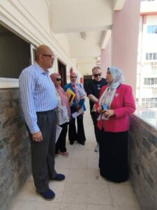 وكان فى شرف استقبالهم الاستاذ الدكتور/ سناء عبد العظيم ابراهيم غندورعميد الكلية ,أ.د/ سهام شحاته ابراهيم حسانين وكيل الكلية لشئون التعليم والطلاب , ا.د/ نجاة صلاح شلبى وكيل الكلية لشئون البيئة وخدمة المجتمع وأ.م.د/ ناهد عبد العظيم عبد السلام مسئول التواصل الطلابى ورئيس قسم تمريض صحة الاسرة والمجتمع حيث تفضل اعضاء اللجنة بتفقد معامل الكلية وقاعات الدراسة والتعرف على الاجراءات المتبعة للحفاظ على البيئة بالكلية